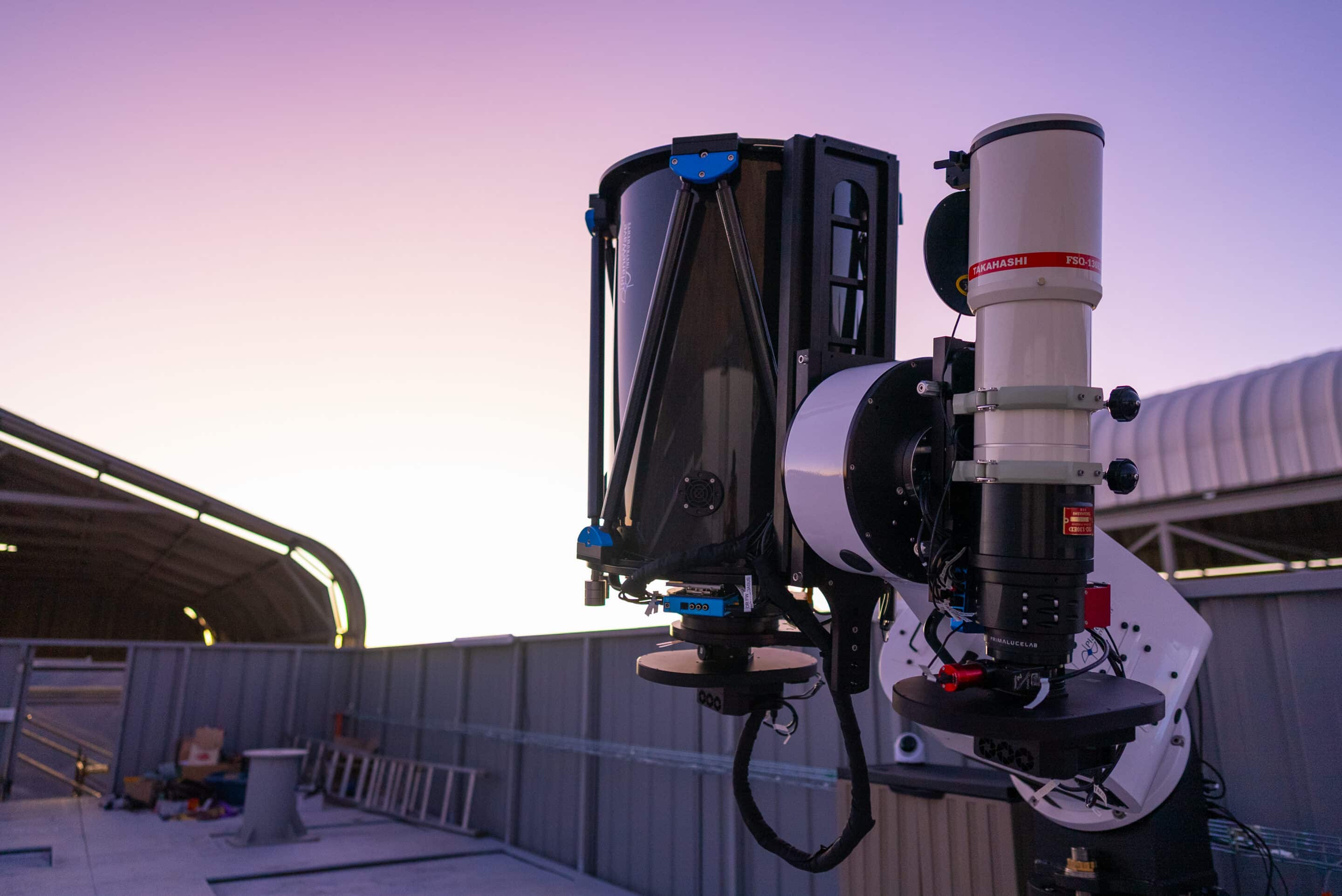 The primary telescope being a PlaneWave DR500 F/3 telescope with a large Moravian C5-150 camera. The secondary telescope to be installed was a client provided rare Takahashi FSQ-130ED that we installed a near identical image train to. Together these two systems have been providing the client with an excellent range of high resolution, wide field, and fast optics.